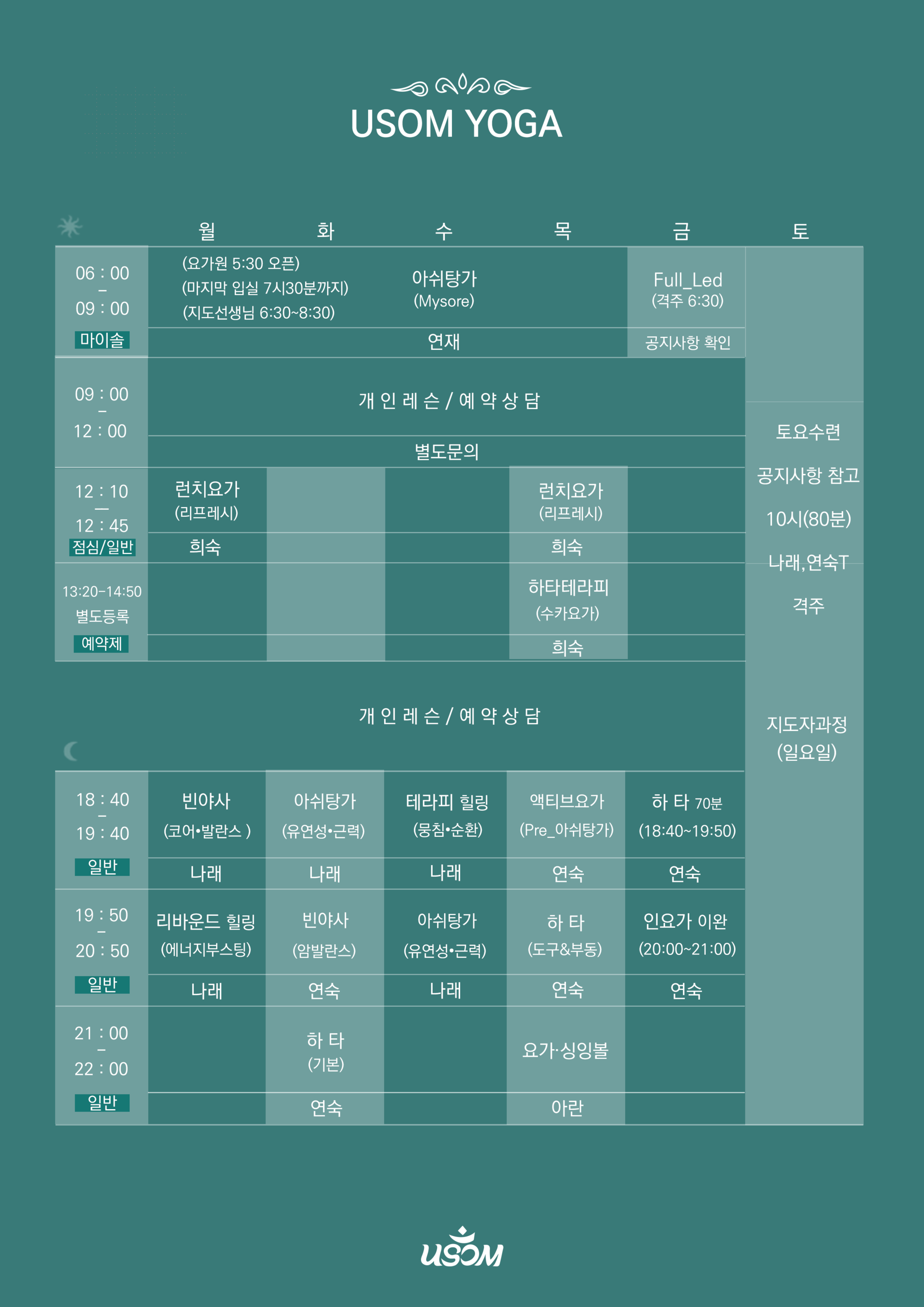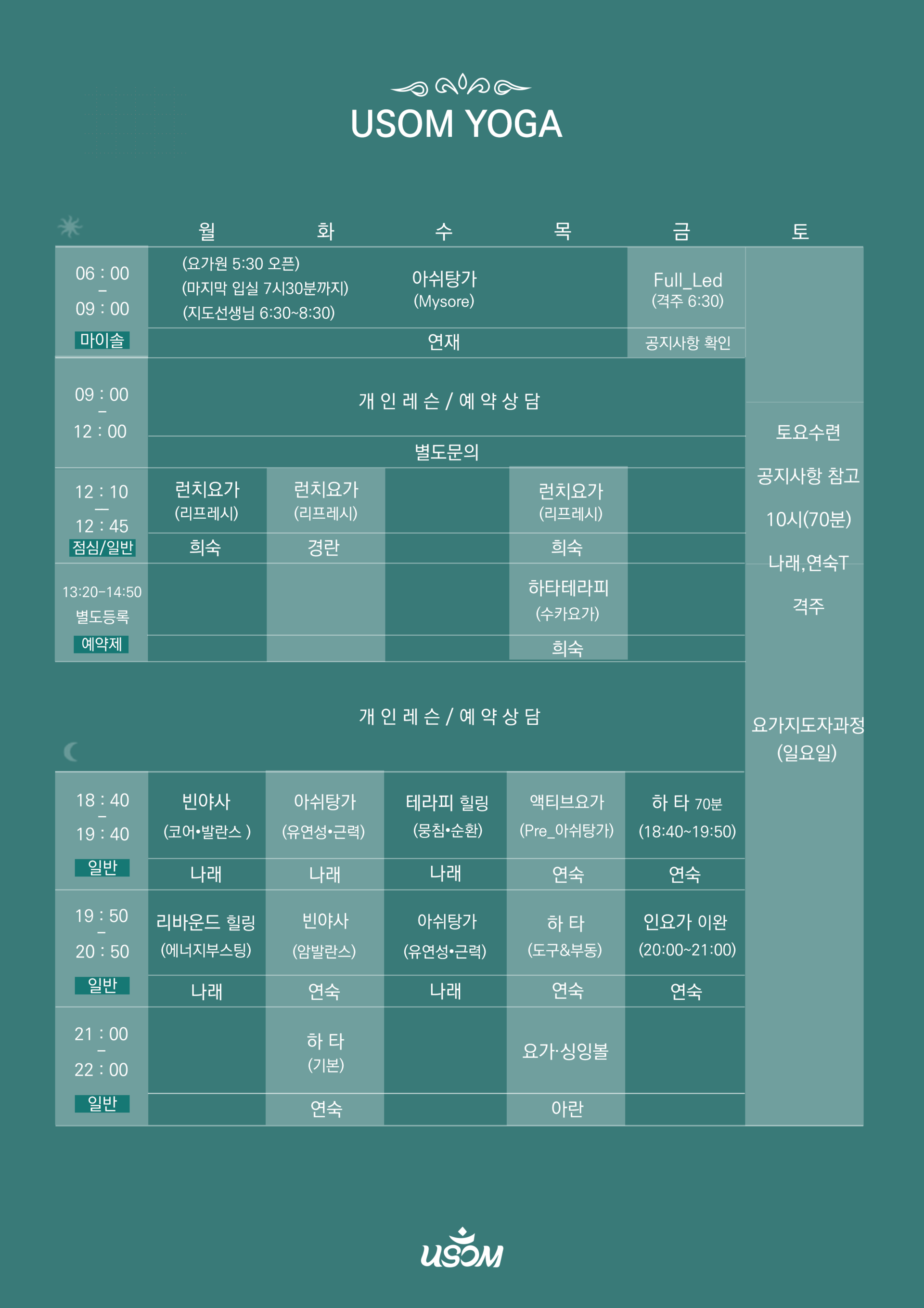 USOM YOGA TIMETABLE