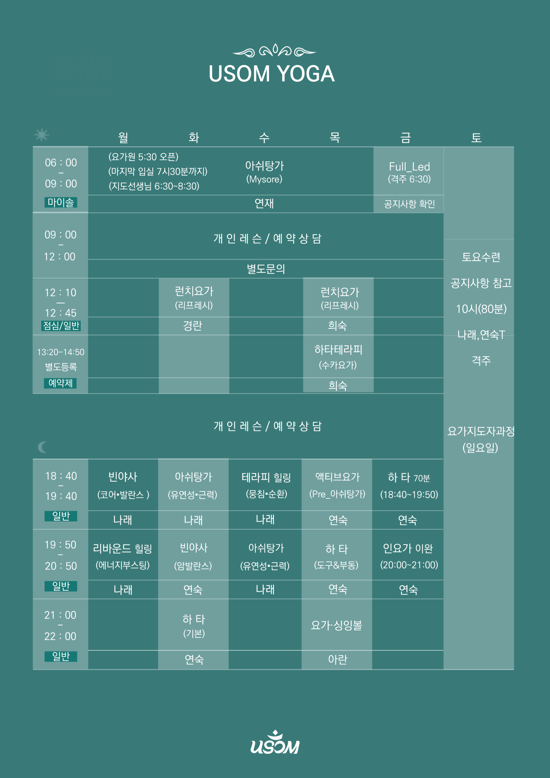 USOM YOGA TIMETABLE
